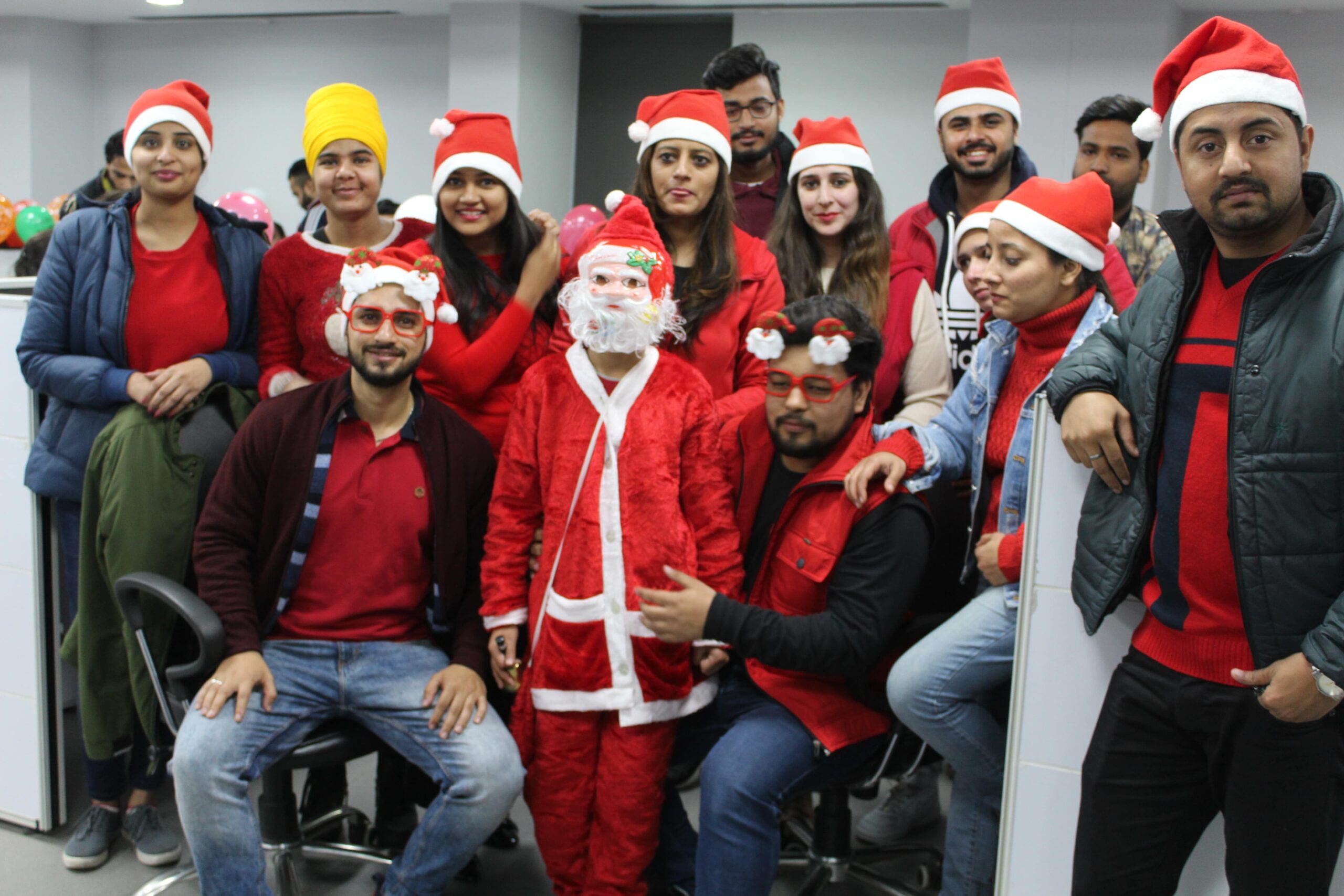 The office was decked in festive red and white, with twinkling lights, garlands and a beautifully decorated Christmas tree greeting everyone as they entered. Many team members came dressed in their holiday best, some in Santa hats, others in elegant seasonal outfits, adding even more joy to the atmosphere.