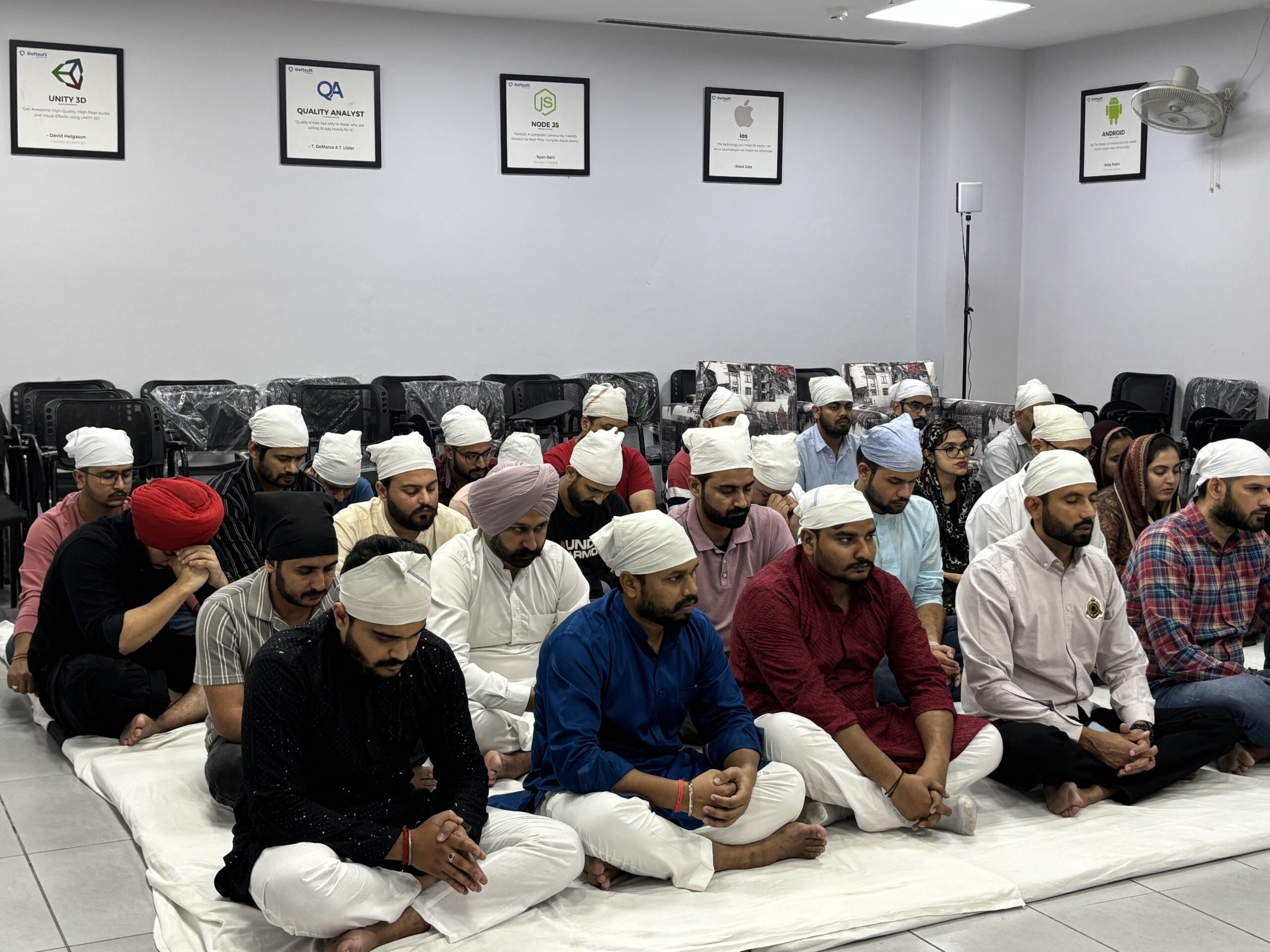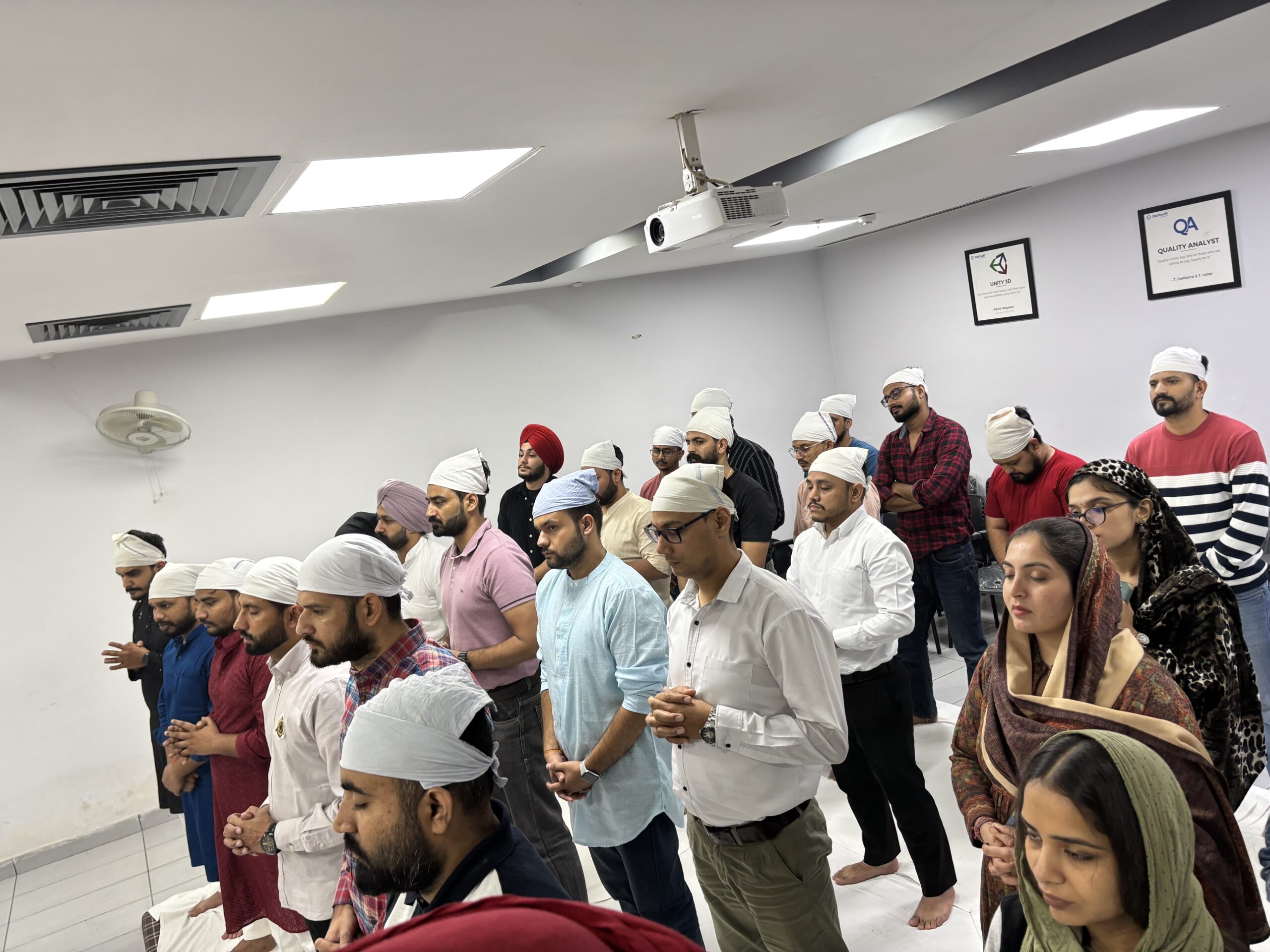 The day began with the entire Deftsoft family gathering in a quiet, peaceful setup within the office. Soft shabad kirtan played in the background, creating a calming atmosphere that instantly infused the space with positivity. Everyone came together to join in the prayers, seeking blessings for peace, prosperity, and the well-being of all. It was a moment where work paused, and mindfulness took over.